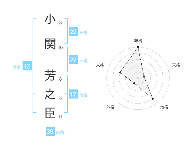 小関 芳之臣さんを姓名の画数から五運を鑑定