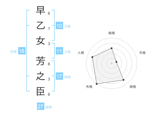 早乙女 芳之臣さんの総格は27画の3点!