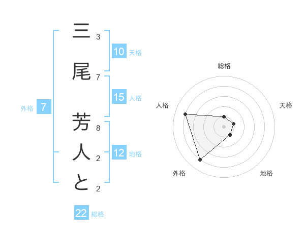 三尾 芳人とさんを姓名の画数から五運を鑑定