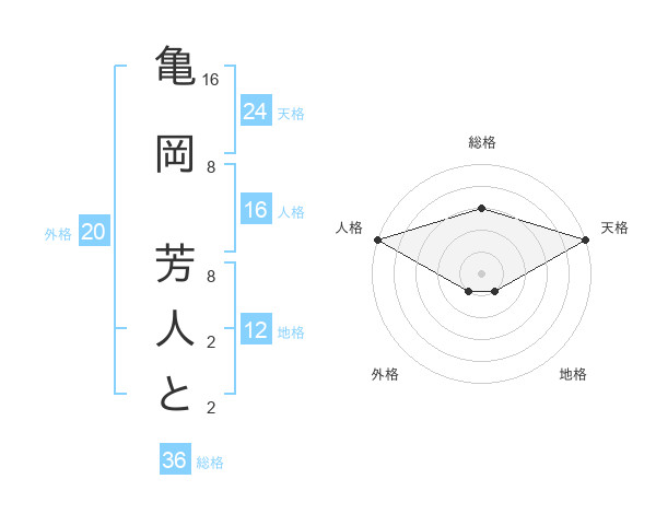 亀岡 芳人とさんの外格は20画の1点!