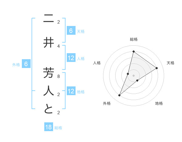 二井 芳人とさんを姓名の画数から五運を鑑定