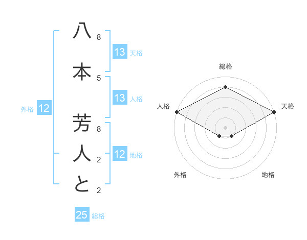 八本 芳人とさんを姓名の画数から五運を鑑定