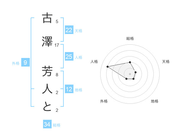 古澤 芳人とさんの地格は12画の1点!