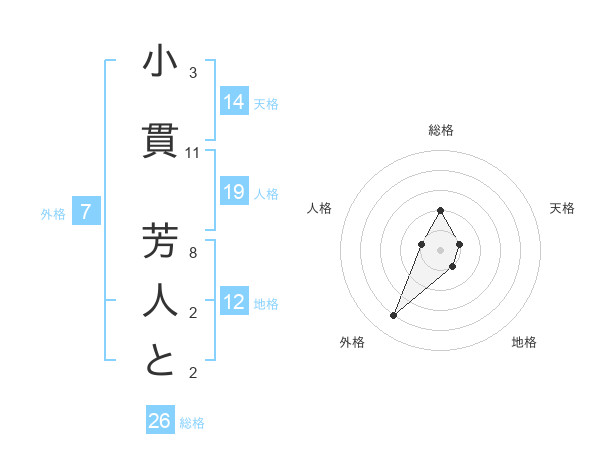 小貫 芳人とさんを姓名の画数から五運を鑑定