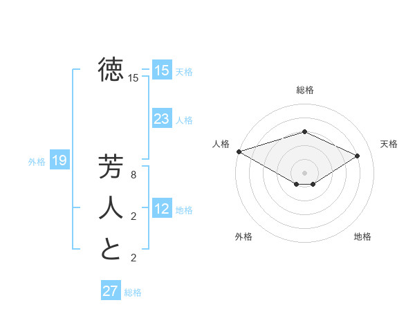 徳 芳人とさんを姓名の画数から五運を鑑定