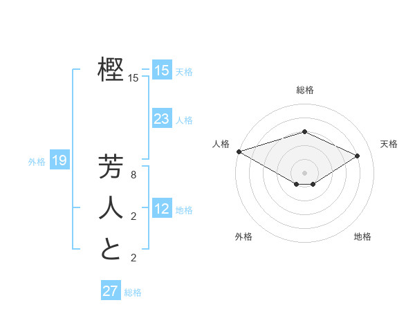 樫 芳人とさんの総格は27画の3点!