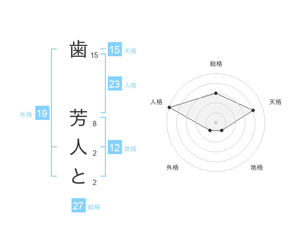 歯 芳人とさんの外格は19画の1点!