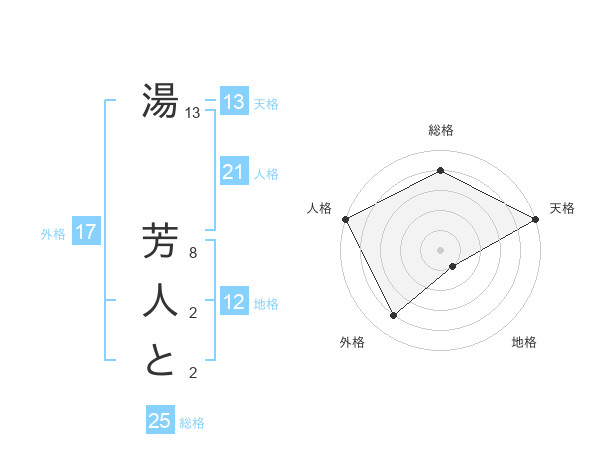 湯 芳人とさんを姓名の画数から五運を鑑定