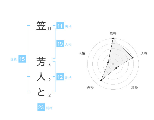 笠 芳人とさんの総格は23画の5点!