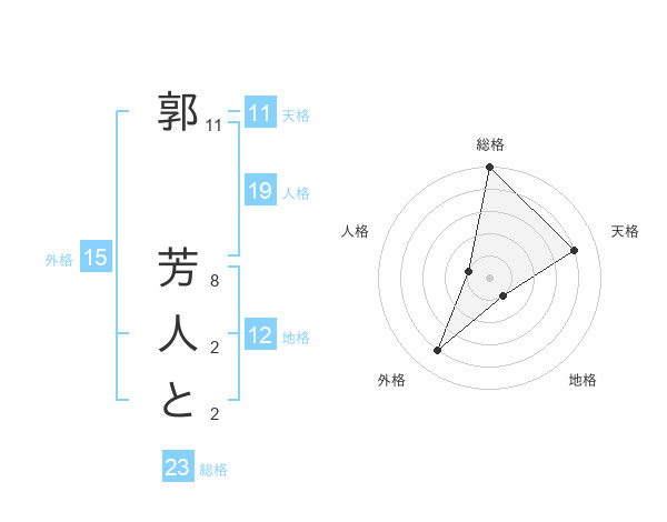 郭 芳人とさんを姓名の画数から五運を鑑定