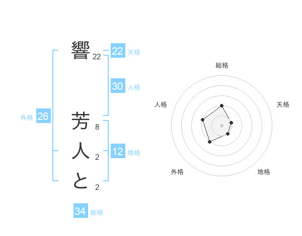 響 芳人とさんの総格は34画の2点!