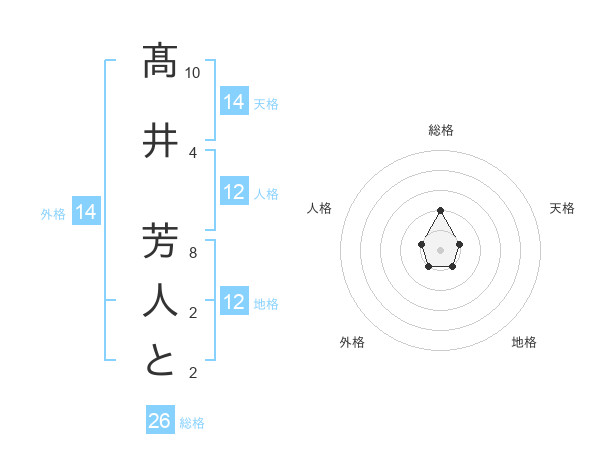 髙井 芳人とさんの天格は14画の1点!