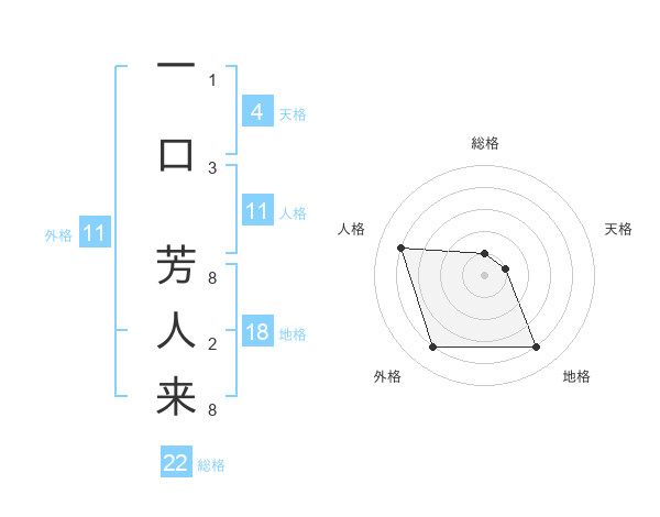 一口 芳人来さんを姓名の画数から五運を鑑定