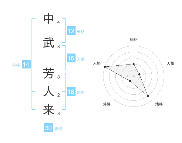 中武 芳人来さんの総格は30画の2点!