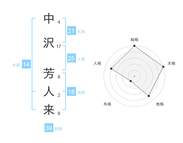 中沢 芳人来さんを姓名の画数から五運を鑑定