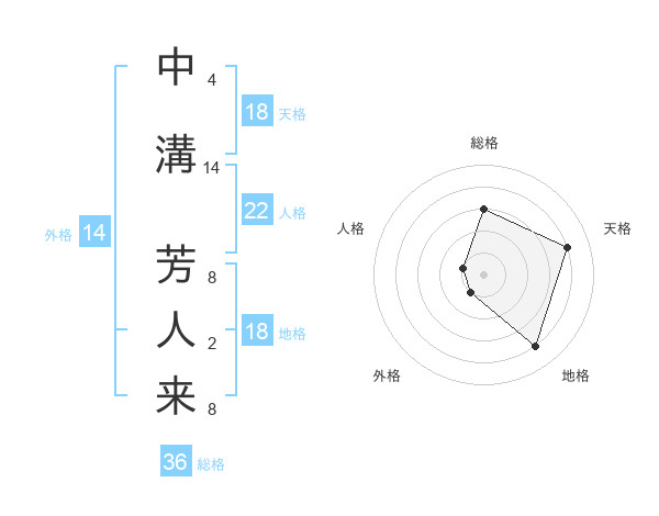 中溝 芳人来さんの天格は18画の4点!