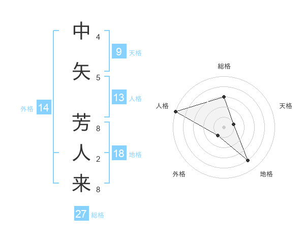 中矢 芳人来さんを姓名の画数から五運を鑑定
