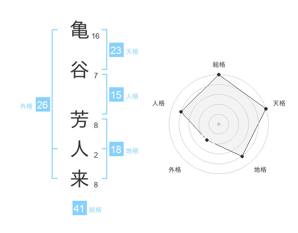 亀谷 芳人来さんの総格は41画の5点!