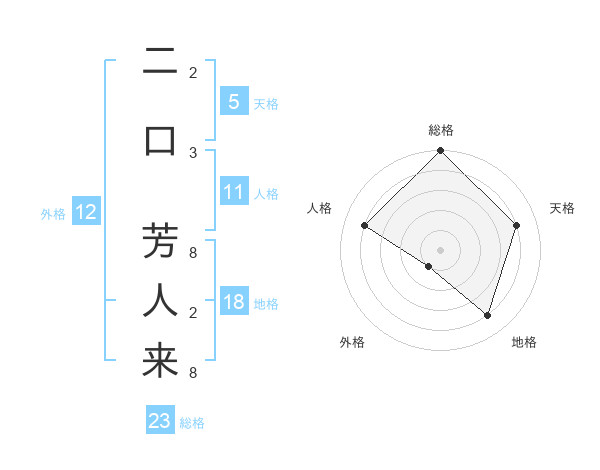 二口 芳人来さんを姓名の画数から五運を鑑定