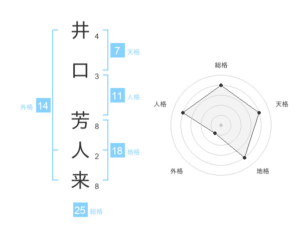 井口 芳人来さんの総格は25画の4点!