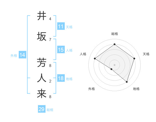 井坂 芳人来さんを姓名の画数から五運を鑑定