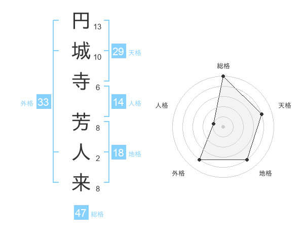円城寺 芳人来さんを姓名の画数から五運を鑑定