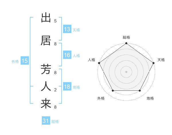 出居 芳人来さんを姓名の画数から五運を鑑定