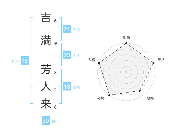吉満 芳人来さんを姓名の画数から五運を鑑定