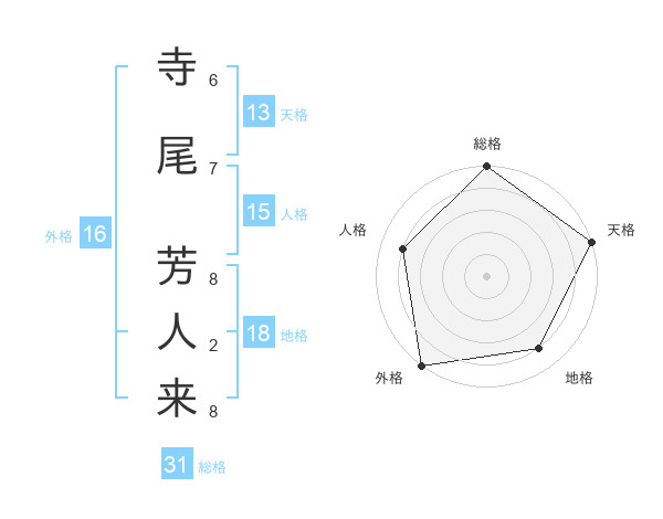 寺尾 芳人来さんの天格は13画の5点!