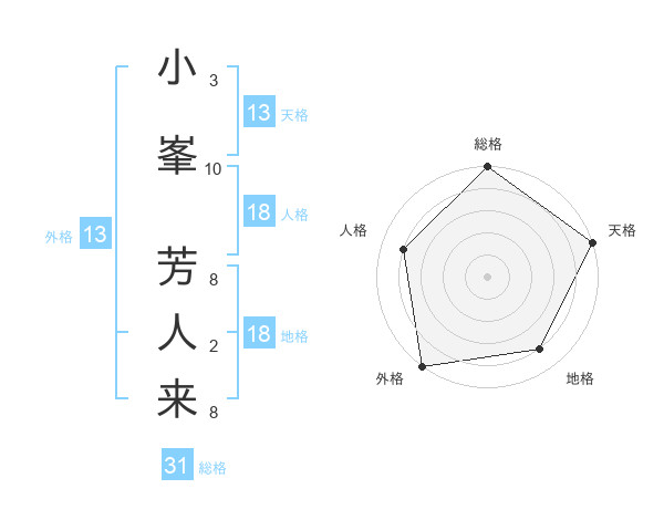 小峯 芳人来さんの外格は13画の5点!
