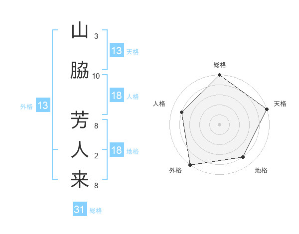 山脇 芳人来さんの外格は13画の5点!