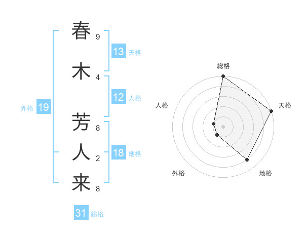 春木 芳人来さんを姓名の画数から五運を鑑定
