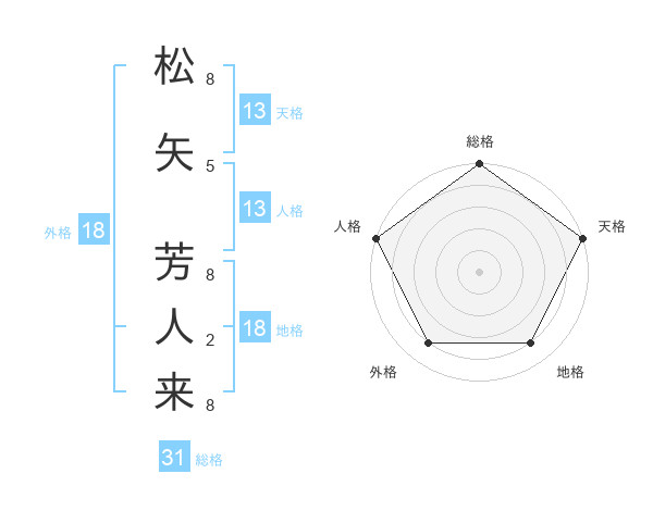 松矢 芳人来さんを姓名の画数から五運を鑑定