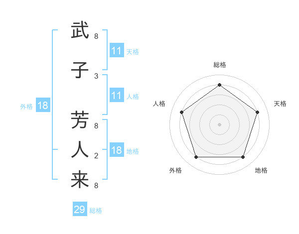 武子 芳人来さんを姓名の画数から五運を鑑定