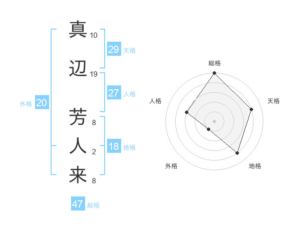 真辺 芳人来さんの総格は47画の5点!