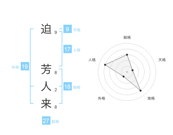迫 芳人来さんの地格は18画の4点!