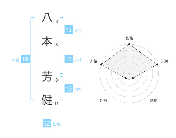 八本 芳健さんの総格は32画の5点!