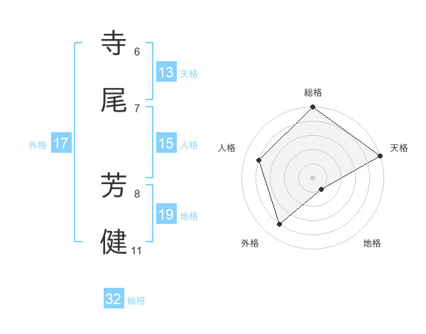 寺尾 芳健さんの総格は32画の5点!