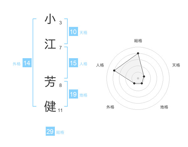 小江 芳健さんの総格は29画の4点!