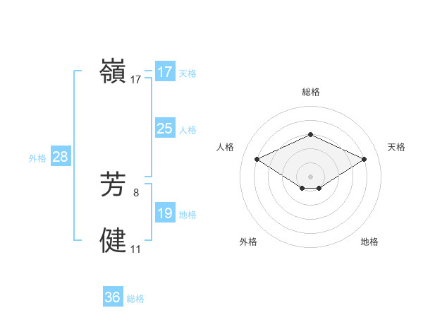 嶺 芳健さんの天格は17画の4点!