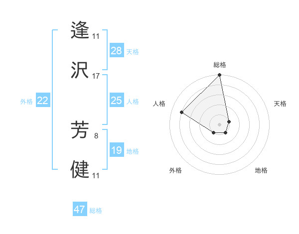 逢沢 芳健さんを姓名の画数から五運を鑑定