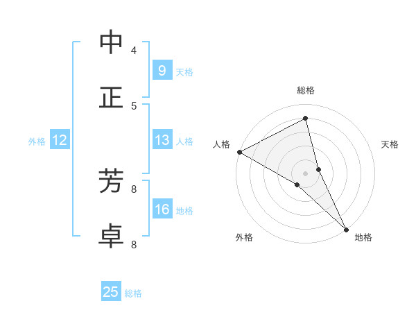 中正 芳卓さんを姓名の画数から五運を鑑定
