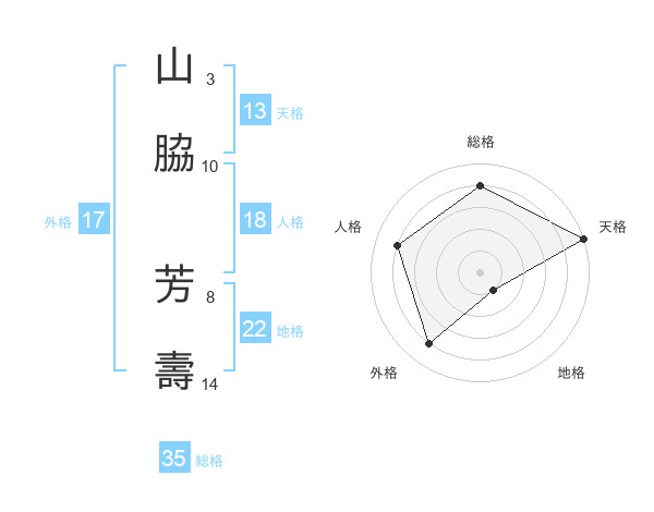 山脇 芳壽さんを姓名の画数から五運を鑑定