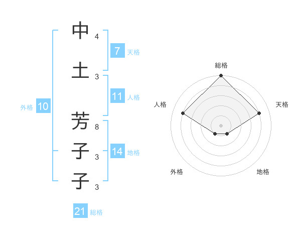 中土 芳子子さんの総格は21画の5点!