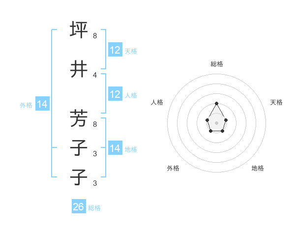 坪井 芳子子さんの総格は26画の2点!