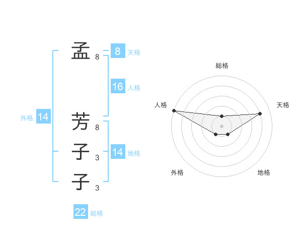 孟 芳子子さんの総格は22画の1点!