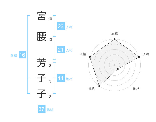 宮腰 芳子子さんを姓名の画数から五運を鑑定