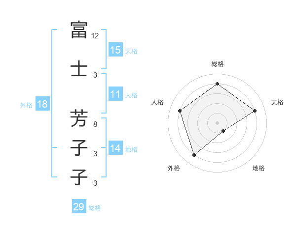富士 芳子子さんを姓名の画数から五運を鑑定