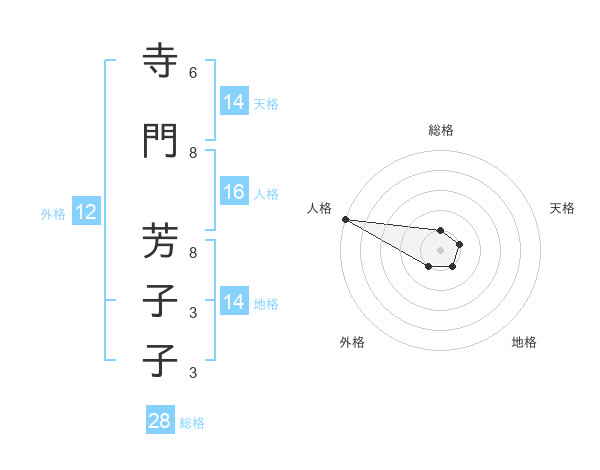 寺門 芳子子さんを姓名の画数から五運を鑑定