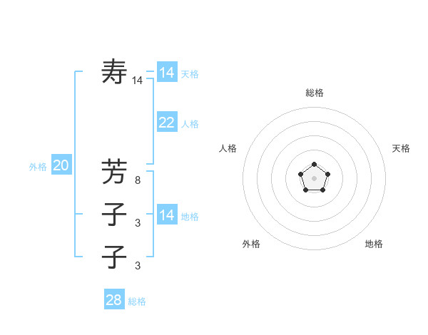 寿 芳子子さんを姓名の画数から五運を鑑定